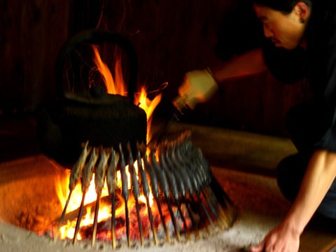 ここの名物は、囲炉裏の火で焼く岩魚の塩焼き。