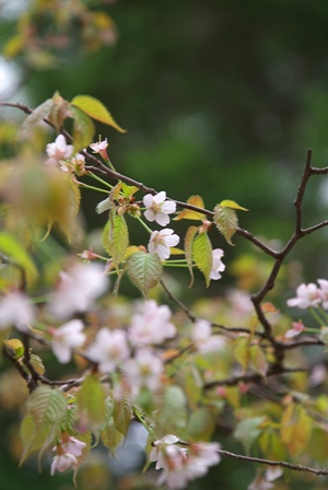 国花とも 宴の夜とも はなれ居て 峰桜咲く 皐月の空に