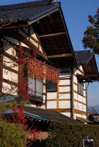 信州と聞いて思い浮かべる景色のなかには、かなりの高確率で、このように軒先に柿簾を吊るした農家がありました。