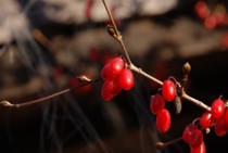 赤いジャケットを着て、赤い自転車にまたがり、赤い実を見て、帰り際に振り向けば、赤い夕空に山のシルエットがひときわくっきりと浮かび上がっていました。