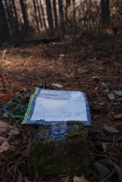 三角点標識は、地面からわずかに顔を出しているだけのものなので、見つけられるか不安でしたが、地図を読んで「ここあたりだ」と思った地点から、ほんの数歩探しただけで見つけることができました。