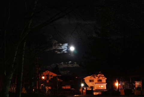 もうすっかり暗くなっていましたが、見上げると、信じられないくらいの高さに光る圧雪車のライトが、山の高さを教えてくれています。