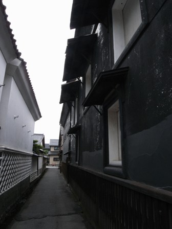 さて、小路にはいると、片側の黒壁の土蔵に圧倒されます。