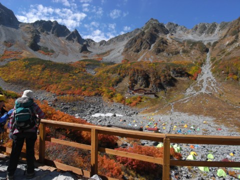 突き抜ける青空の下、お店No1の奥穂ちゃんやら虎視眈々とNo1の座を狙っている北穂ちゃんやらニューフェイスの涸沢岳ちゃんやらに囲まれて、大紅葉楽団の生演奏に踊る色とりどりのテントたちを眺めながら呷る美酒。