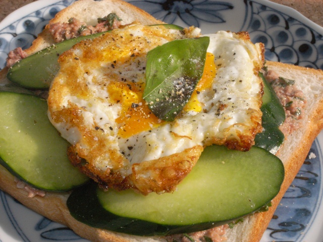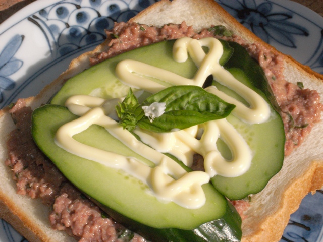 パンにのっけてきゅうりをのっけてお好みでマヨなぞ塗ったくってできあがり。