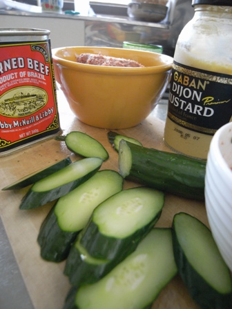 バジル風味のコーンビーフときゅうりのオープンサンド